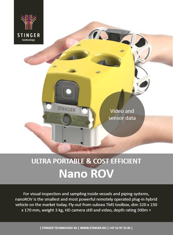 For visual inspection and sampling inside vessels and piping systems, nanoROV is the smallest and most powerful remotely operated plug-in hybrid vehicle on the market today.