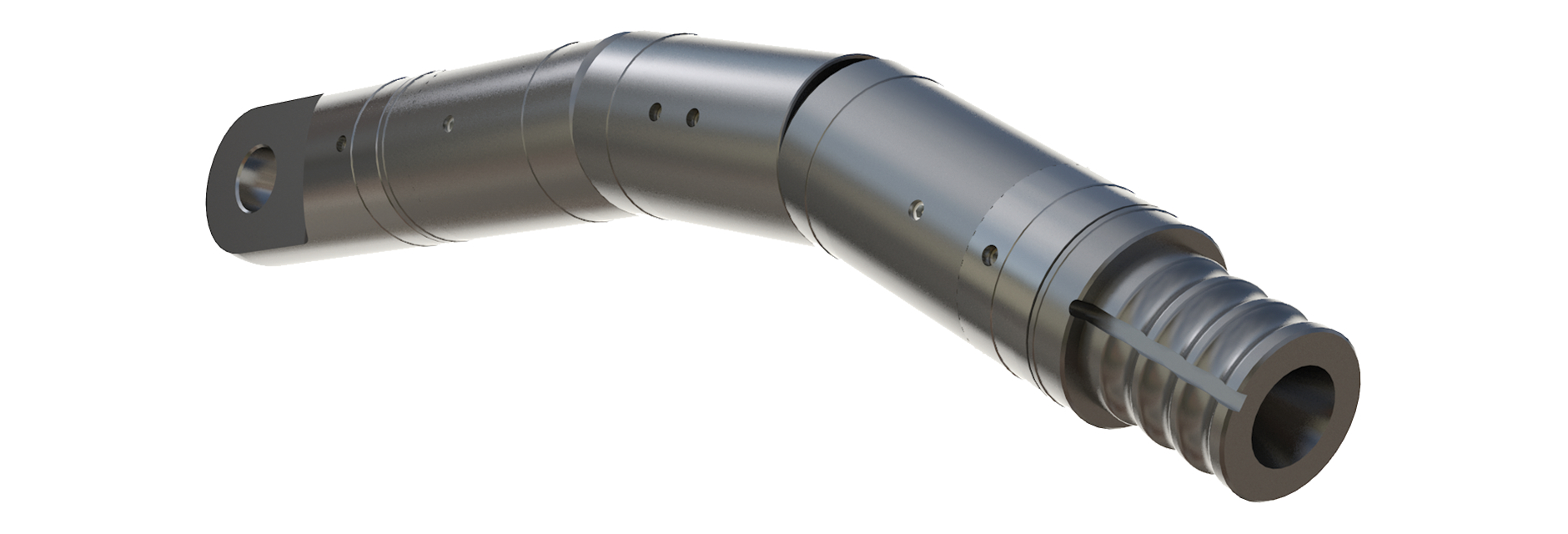 The tool features a double knuckle joint which is capable of bending to a radius of approximately 26" ensuring that even with the shortest goosenecks the tool can safely conform to the radius without any excessive sideward loading.