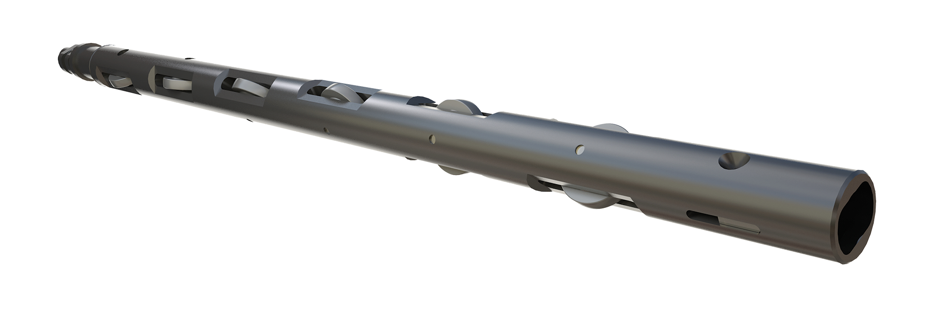 The roller wheels rotate freely on hardened axles to reduce friction which is commonly known as ’drag’. Particularly in highly deviated wells, drag occurs between the full contact area of the toolstring and the tubing wall. Strategically placed along the length of the wireline toolstring, the mass and drag reducing properties of the LiMAR® Roller Stem also serves to enhance bi-directional impact forces during jarring operations.