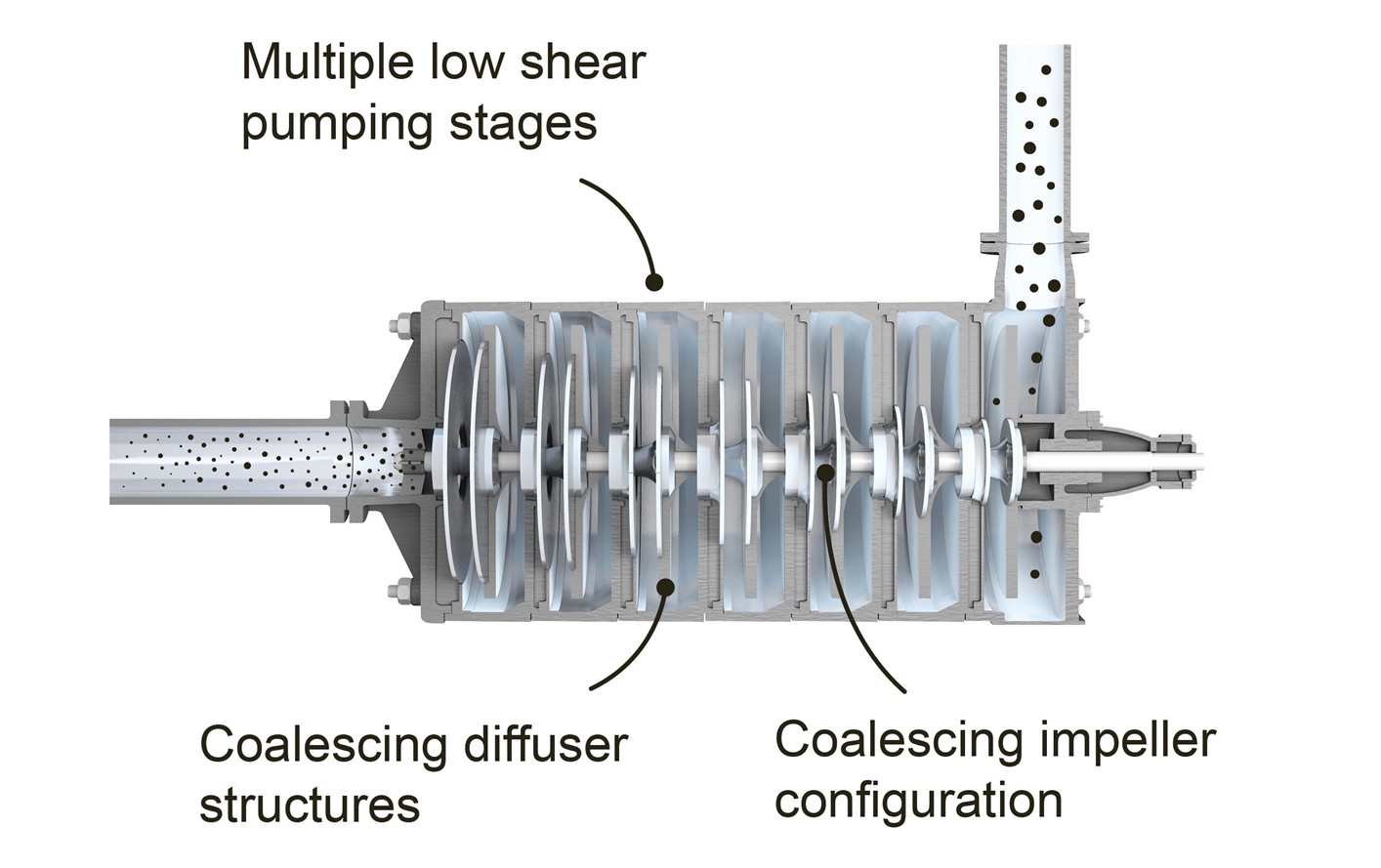 When it comes to pumping of produced water streams to water treatment equipment, an increase in droplet size will have a positive effect on the separation efficiency.