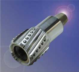 The torque-sub also allows maximum efficiency on directional wells where doglegs necessitate a reaming run through the build section. Synthetic diamond-enhanced inserts are designed distinctively for continuous reaming, capable of maintaining full gauge hole in soft to medium hard rock. With each insert brazened into the body, there are no moving parts to wear or fail.