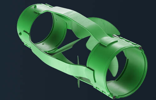 The 320 Turbolizer is designed with set screws and turbolater fins. The fins force the fluid flow in a turbulent and outward directed spiral. The turbolizers fluid motion causes break up of cement and reduction in channeling, deflection of mud and cement towards washed out sections of the well bore, improved filter cake removal and self-cleaning action preventing blockages or plugging.