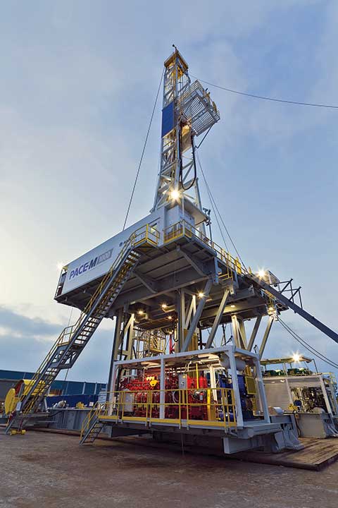 Ideal for drilling up to four wells per pad, the PACE®-M1000 rig features faster, more advanced walking capabilities for multi-well pad drilling.